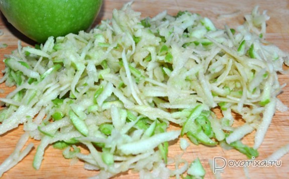 На той же крупной терке натираем яблоки, хотя их можно просто нарезать тонкими дольками.