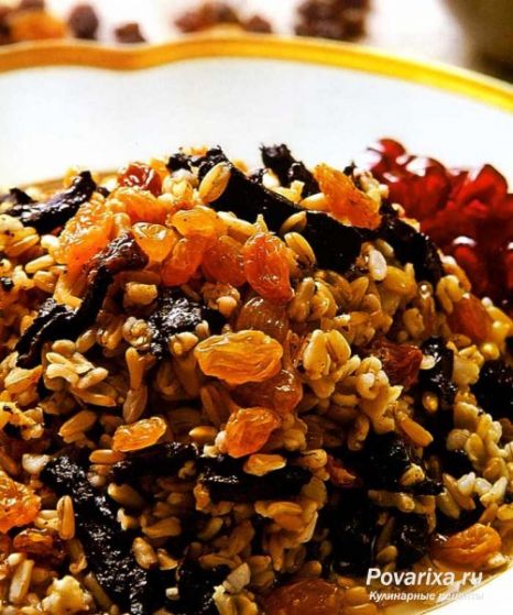 - Чернослив и изюм хорошо промываем и на 15 минут заливаем кипятком.