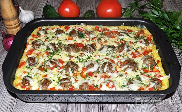 Пока варится картошка для пюре, занимаемся фаршем. Шинкуем очень мелко лук, кроме него добавляем в фарш соль, зелень, смесь перцев, базилик, приправу к мясу (нет готовой – берем любимые специи). Вымешиваем, добавляем молока так, чтобы фарш не был жидким, но и не плотным. И обязательно отбиваем о дно миски (20 раз, не меньше).