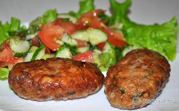 Залив масло в сковороду, даем ему перекалиться, немного снижаем сильный огонь и жарим котлеты сначала до корочки снизу – 1,5-2 минутки. Перевернув, через минуту снижаем огонь до слабого, на котором наши сочные и вкусные эконом-котлетки дойдут до полной готовности и вкуса за 4-5 минут.
