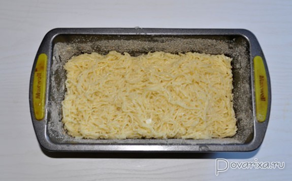 Форму смазываем маслом и обсыпаем панировочными сухарями.