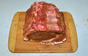Мы взяли кусок корейки, но приготовить так же можем и окорок, или карбонад, или шею, лопатку. Мясо, разумеется, промываем и обязательно хорошо подсушиваем поверхность бумажными полотенцами.