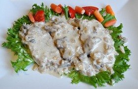 Параллельно даем маслу в другой сковородке 4-5 минут перекалиться на большом огне. Быстро обваливаем мясо в муке и обжариваем – не дольше минуты каждую из сторон. Солим после переворачивания.