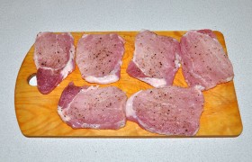 С обеих сторон посыпаем перцем, слегка растертыми травами, похлопываем. Взяв пакетик, который помогает избежать брызг и повреждения мясных волокон, кладем в него поочередно ломти и отбиваем до толщины не более 10-12 мм.