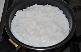 Ставим варить (почти до готовности) рис. Пока кастрюлька на плите, у нас достаточно времени для подготовки всего остального.