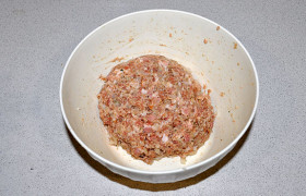 Руками 2-3 минуты перемешиваем и 15-20 раз отбиваем фарш. Он становится эластичным, не трескается при ударе о дно миски и хорошо держит форму.