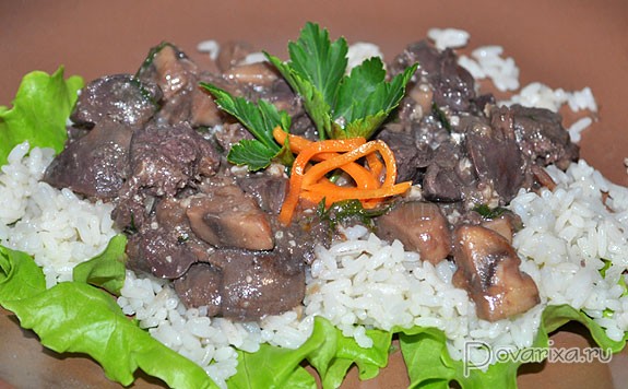 Помешивая, вливаем в сковороду с печенкой смесь для соуса, снижаем огонь