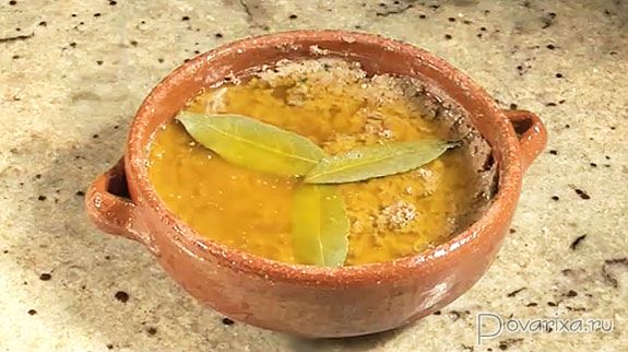 Выкладываем паштет в керамическую посуду, плотно, ровно. Кладем лавровый лист и осторожно, не спеша заливаем растопленным топленым маслом. Через час масло застынет, и паштет готов к употреблению.