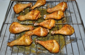 Запекаем ножки, в зависимости от их величины и веса, от 40-45 до 60-65 минут. Сначала – на уровне чуть ниже середины духовки, затем поднимаем выше для подрумянивания.
