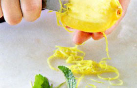 - С промытого лимона натираем мелко цедру. Мяту измельчаем – нам нужна 1 ст. ложка.