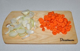 Отвешиваем нужное количество лука и моркови, нарезаем довольно крупно. Морковь можно и натереть.
