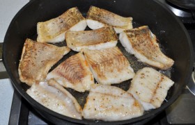 Когда масло раскалено на сильном огне, выкладываем филе и быстро обжариваем с обеих сторон.