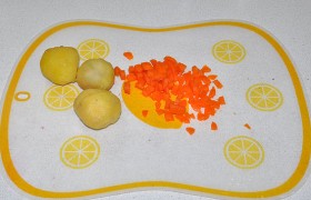 Отвариваем картофель и морковь. Отдельно - свеклу в воде с добавкой уксуса. Вовремя проверяем на готовность, чтобы овощи не превратились в кашу. Готовые – чистим и нарезаем. Кубиками – морковь.