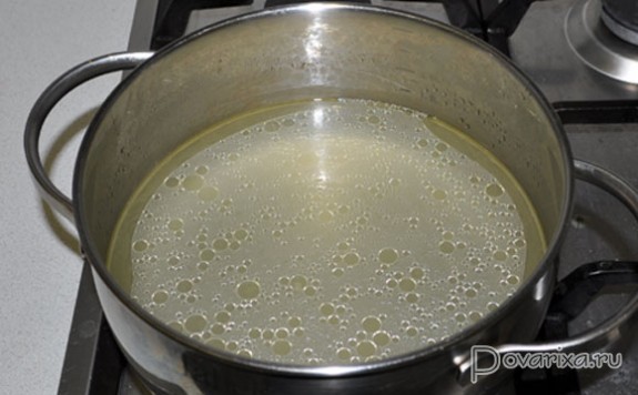 И посмотрите, какой прозрачный у нас бульон – а мы еще даже не процеживали его. Он насыщенный, крепкий – мы варили его с малым количеством воды. Когда процеживаем – на ситечке практически ничего не остается.