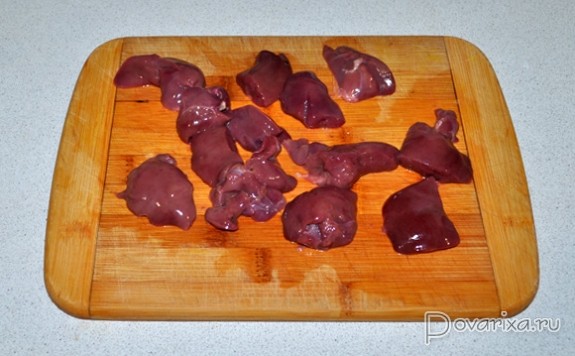 Печень разбираем, отделяем кусочки друг от друга, хорошо промываем.
