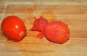 Кабачок нарезаем небольшим кубиком, добавляем в заправку, пару минут обжариваем и кладем томатную пасту.