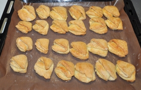 Славный рецепт: тесто простое, замешиваем за 4-5 минут, даем охладиться, раскатываем, вырезаем, обмакиваем в сахар, складываем и быстро выпекаем. Печенье пухлое, мягкое, вкусное и съедается на раз.