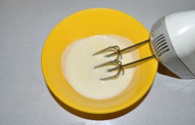 Включаем духовку на 200°. Яйца взбиваем миксером с сахаром и солью, ванильным сахаром, в конце подсыпаем разрыхлитель (либо 1 ч. ложку соды, погасив ее таким же количеством лимонного сока или уксуса).