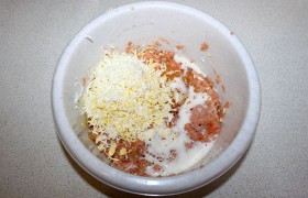 Вторую половину филе, нарезав, пропускаем вместе со слегка обжаренным луком через мясорубку или блендер. В рыбный фарш добавляем сливки, белок сырого яйца, мелко натертое вареное яйцо, соль и перец по вкусу, хорошо вымешиваем.