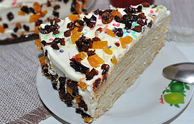 Если мы решили делать медовик со сметанным кремом, то за несколько часов (а лучше – за 12-24 часа) берем сито, размещаем в нем сложенную в 6-8 слоев марлю и выливаем сметану: вы удивитесь, сколько жидкости (сыворотки) натечет из нее за эти часы. А сметана отлично будет взбиваться в густой крем.