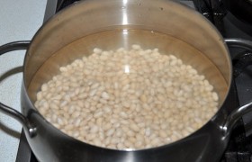 Фасоль привычно замачиваем на несколько часов, а перед началом готовки ставим вариться почти до готовности (разные сорта фасоли варятся разное время).
