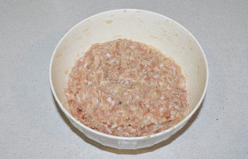 Фарш мы готовим из курицы с небольшой добавкой свинины. Перемолотая свинина прибавляет сочности, аромата и вкуса. Но фарш может быть другой, на свой вкус.