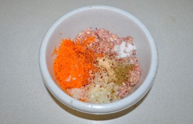 Спустя 12-15 минут, когда хлопья увлажнилась и размякли, еще раз вымешиваем фарш и отбиваем – 18-22 раза.