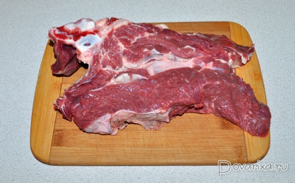 Промытое и хорошо обсушенное мясо нарезаем кусочками средней величины (примерно 30 мм).
