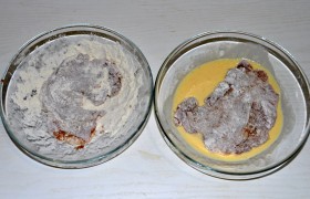 Пока на сильном огне в сковороде перекаливается масло, яйцо вилкой взбиваем со сливками или молоком. Отбивные сначала панируем в муке, затем купаем в яйце – и кладем в раскаленное масло.