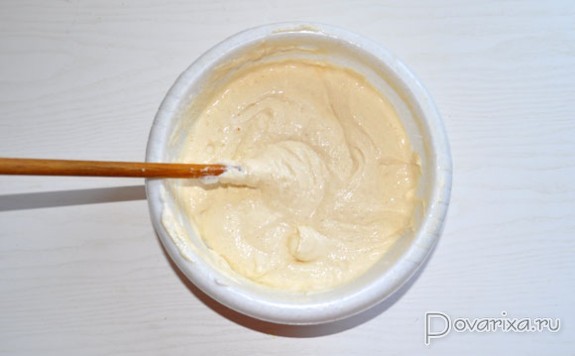 Перемешиваем аккуратно, как бисквитное тесто - движениями ложки сверху вниз, а не по кругу.